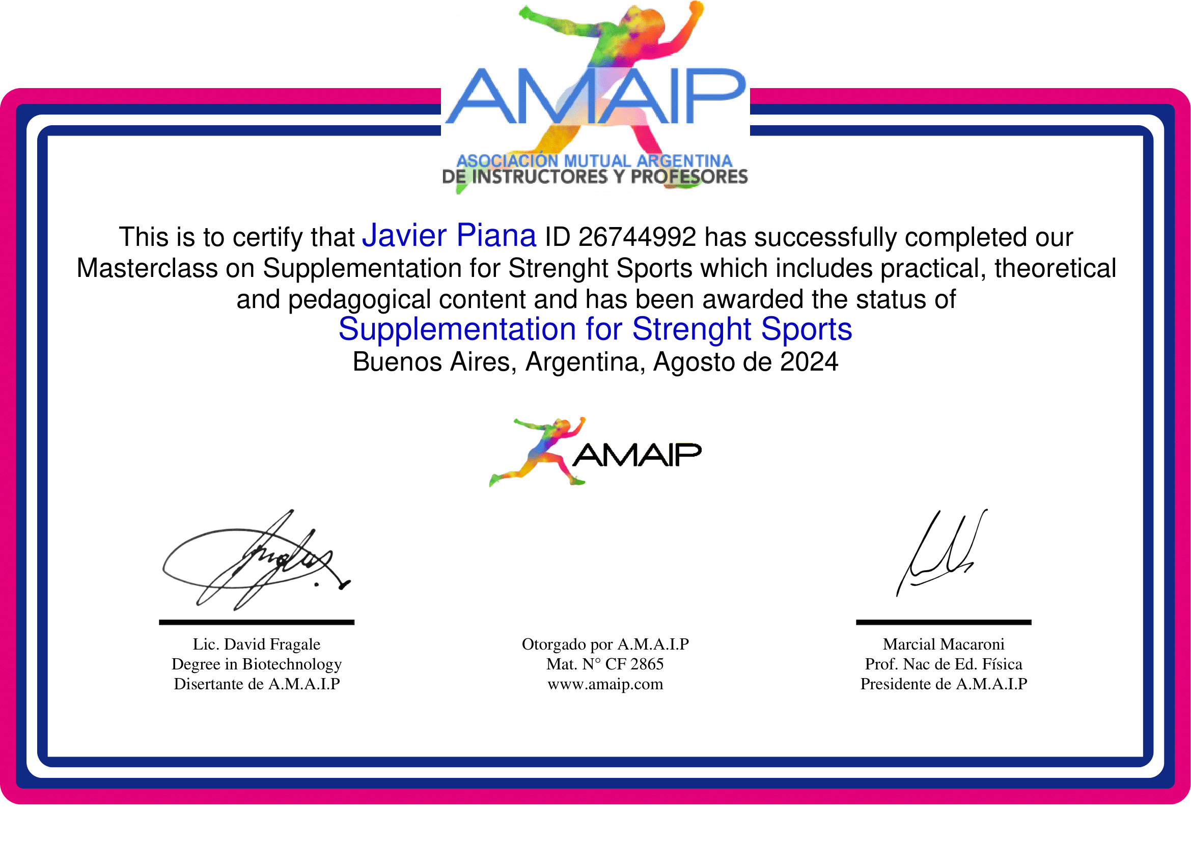 • Te damos la bienvenida a la primera parte de la Masterclass más completa en suplementación deportiva. • En 2 horas de formación intensiva, exploraremos las claves para potenciar el rendimiento en deportes donde predomine la fuerza o los esfuerzos intermitentes de gran intensidad, como la mayoría de los deportes de equipo, el levantamiento olímpico y diversas disciplinas. • Contarás con un análisis detallado de los suplementos indispensables, respaldado por los estudios más recientes, para alcanzar ese plus que marcará la diferencia en los resultados de tus atletas. • IMPORTANTE: estas formaciones, cuentan con un beneficio exclusivo: obteniendo tu carnet digital del socio AMAIP, podrás inscribirte con un 50% de DESCUENTO. • Te invitamos a ver toda la información en este sitio, y a formar parte de esta increíble cursada!