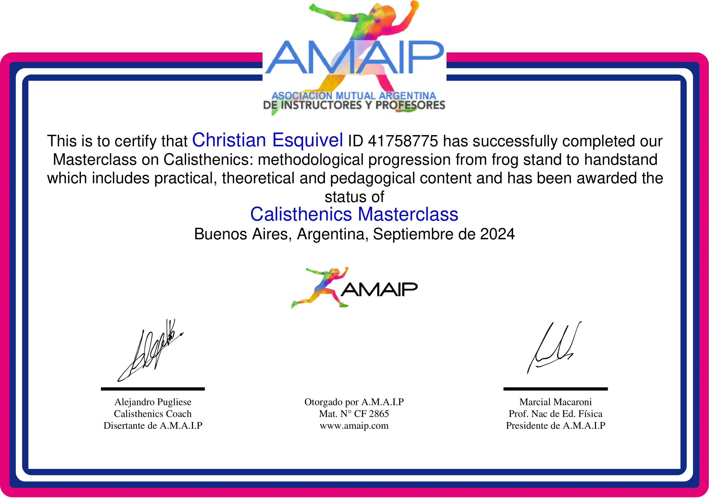 • Te damos la bienvenida a una nueva Masterclass, en este caso específica de la Calistenia. • En 1hs 30´ de formación intensiva, encontrarás las progresiones necesarias para lograr el pasaje desde la posición ranita, hacia la vertical. Una habilidad difícil de conseguir, pero que, durante todo el proceso de la práctica, verás cómo te ayudará a potenciar la fuerza, el equilibrio, la flexibilidad, movilidad y el control sobre el propio cuerpo a gran escala. • IMPORTANTE: estas formaciones, cuentan con un beneficio exclusivo: obteniendo tu carnet digital AMAIP, podrás inscribirte con un 50% de DESCUENTO. • Te invitamos a ver toda la información en este sitio, y a formar parte de esta increíble cursada!