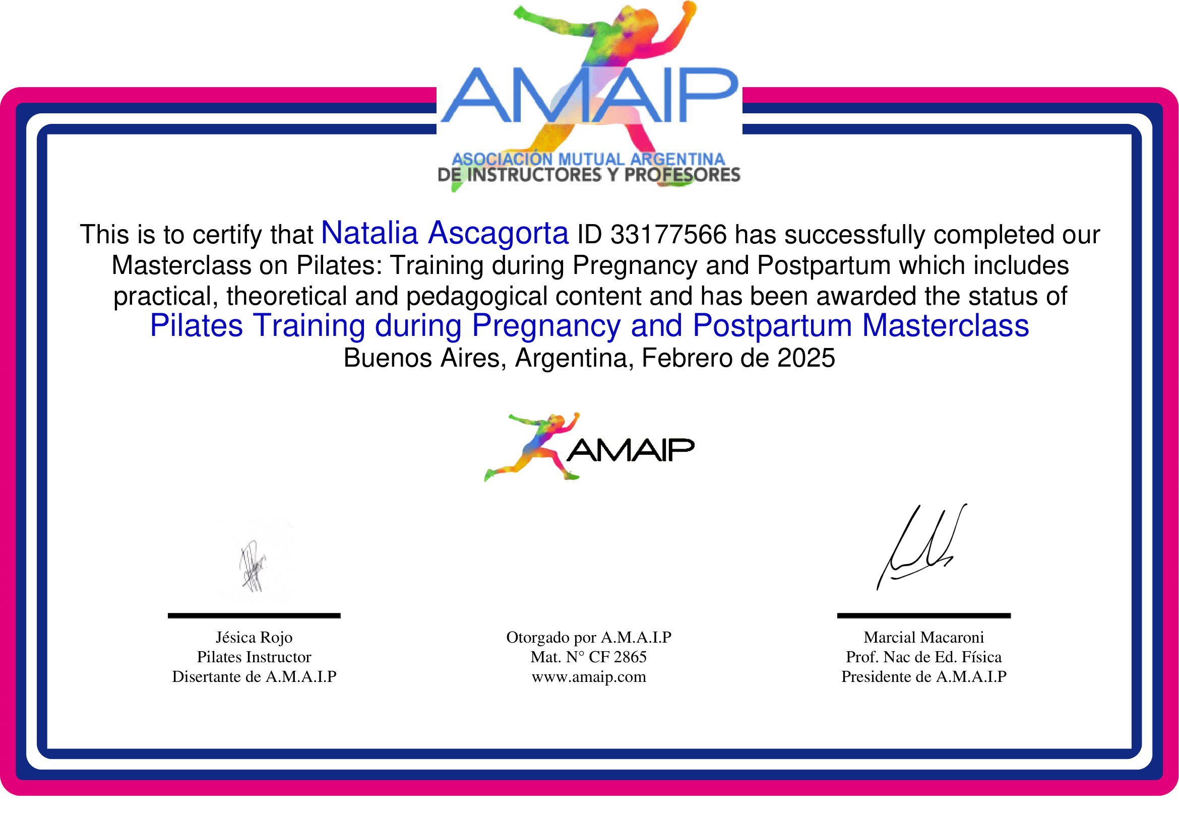 • El embarazo y el postparto son etapas de grandes cambios físicos y emocionales. Contar con un programa de entrenamiento adecuado es clave para el bienestar de la madre y del bebé. • Desde AMAIP, te damos la bienvenida a esta Masterclass especializada, diseñada para brindarte las herramientas necesarias para aplicar el método Pilates de manera segura y efectiva durante esta etapa. • En más de 3hs de formación, junto a la clase en VIVO y material bibliográfico, exploraremos la fisiología del embarazo, los beneficios del Pilates Reformer y Mat en cada trimestre, la importancia del suelo pélvico y las mejores estrategias de entrenamiento adaptadas a cada etapa. • Te invitamos a ver el VIDEO explicativo y toda la información en esta página, donde descubrirás cómo esta formación te permitirá acompañar de manera profesional a mujeres gestantes y en postparto, optimizando su calidad de vida y su recuperación.