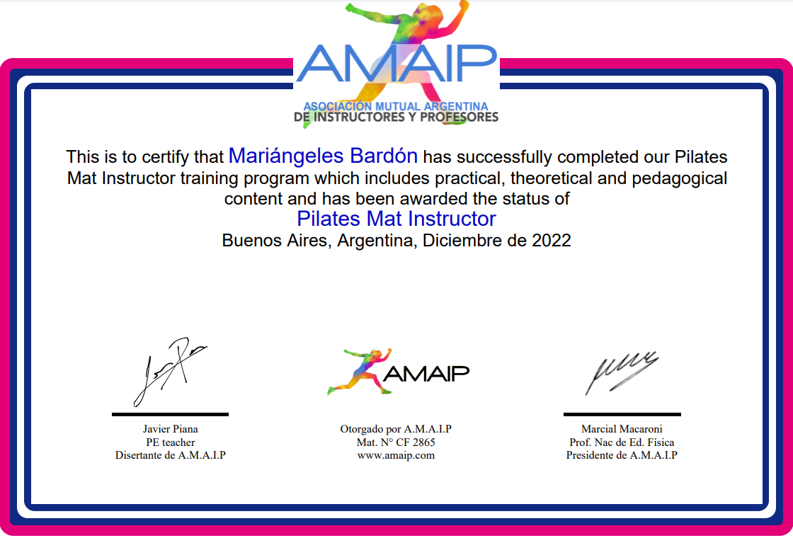 • El instructorado más solicitado por nuestros alumnos: con contenido exclusivo en Pilates Mat. Con la posibilidad de dedicar todo el material al método Pilates Mat (colchoneta), se encontrarán con nuevas variantes, ejercicios, elementos, principios, y métodos de planificación para esta modalidad, como nunca antes. • Dictado por el Instructor Javier Piana, especialista en el método Pilates y socio fundador de AMAIP, con trayectoria de más de 20 años como Instructor del Método. • Te invito a ver el siguiente VIDEO EXPLICATIVO, donde podrás ver todos los detalles acerca del Instructorado, y luego seguir leyendo el temario. • Cualquier consulta estamos a disposición, bienvenidos a AMAIP.