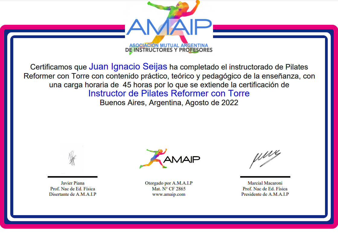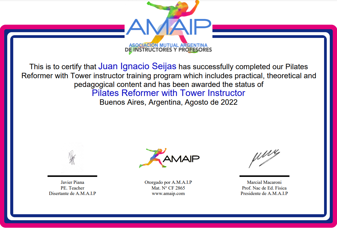 • La actualización más esperada para nuestro instructorado de Pilates. • Con el mejor contenido en Reformer, junto a una extensa parte práctica y una enorme variedad de ejercicios con Torre, exclusivos de este apartado. Para que cada instructor, pueda desempeñarse en cualquier ámbito, con todos los elementos presentes en una clase. • Dictado por el profesor Javier Piana, especialista en el método Pilates y socio fundador de AMAIP, con trayectoria de más de 20 años como Instructor del Método. • Te invito a ver el siguiente VIDEO EXPLICATIVO, donde podrás ver todos los detalles acerca del Instructorado, y luego seguir leyendo el temario. • Cualquier consulta estamos a disposición, bienvenidos a AMAIP.