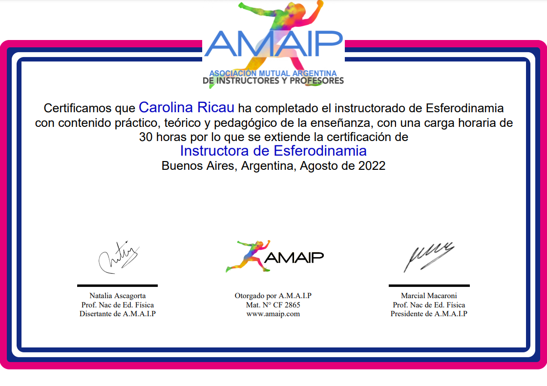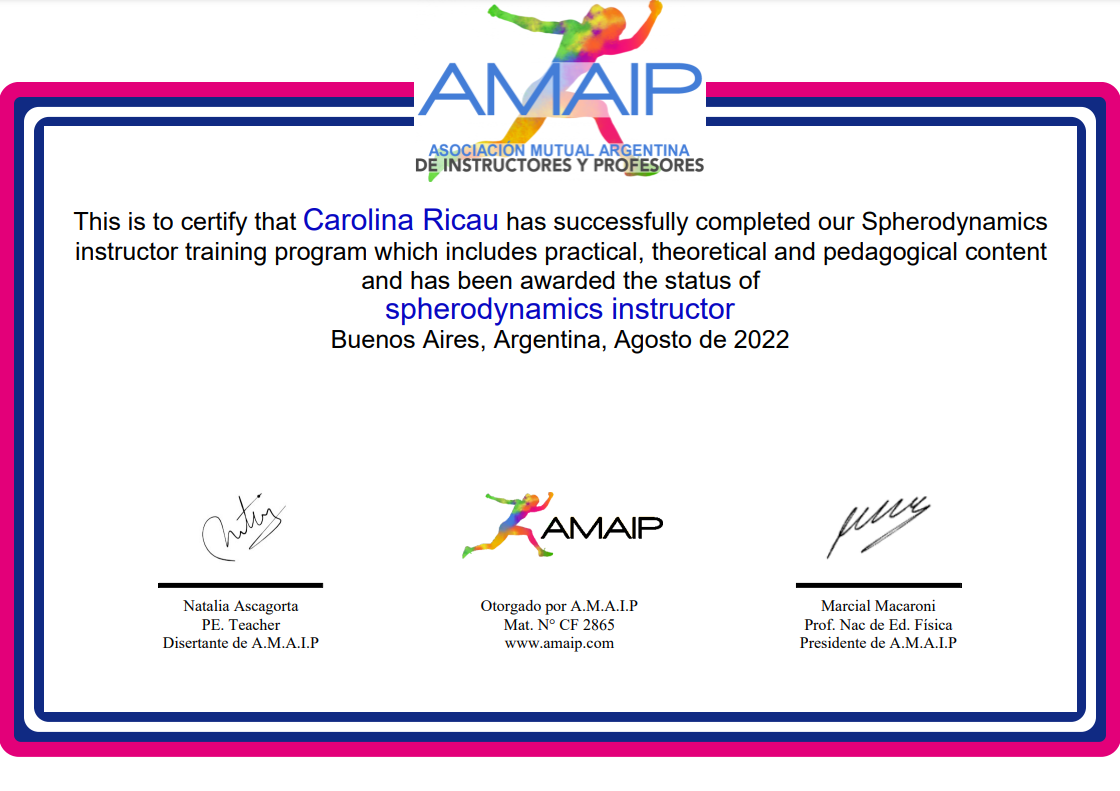 • Te presentamos la mejor formación para planificar tus sesiones de entrenamiento, con uno de los elementos más funcionales en gimnasios y centros de entrenamiento: Esferodinamia. • Desde el desarrollo de las capacidades físicas, hasta la planificación de clases para nivel inicial, intermedio y avanzado: la capacitación ideal para que puedas potenciar tus posibilidades como profesional. • Podrás cursar A TU RITMO, capacitándote en tus ratos libres, y al finalizar la formación, te certificarás como instructor del método Esferodinamia. • Bienvenidos a AMAIP, donde el proceso de formación, no tiene límites.